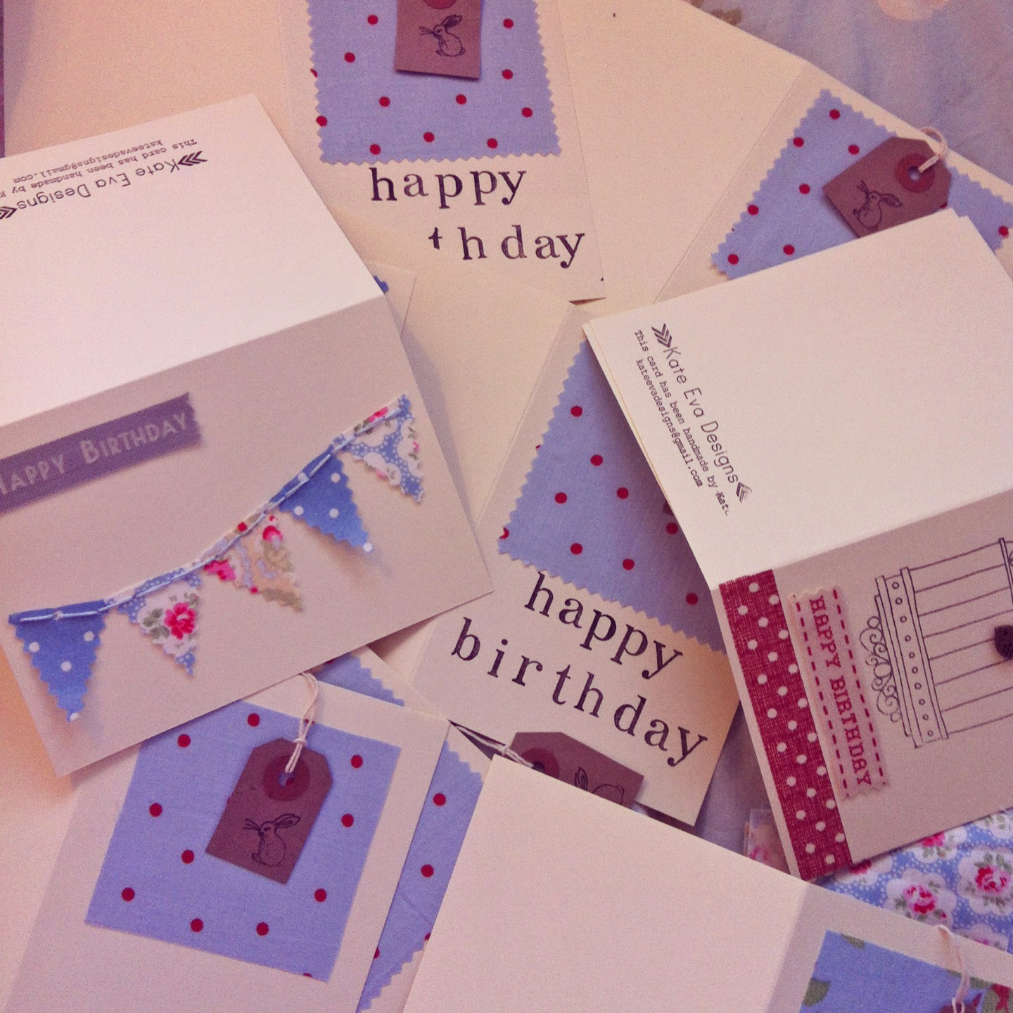 Crafty Sundays April 7, 2013April 18, 2016Categories CraftsLeave a Comment on Crafty Sundays I spent my Sunday mainly making a new range of Birthday cards for my Etsy shop and here are some of them. All cards are available now from etsy.com/shop/kateevadesigns Share this: Share on X (Opens in new window) X Share on Facebook (Opens in new window) Facebook Like Loading... Published by kateevadesigns View all posts by kateevadesigns