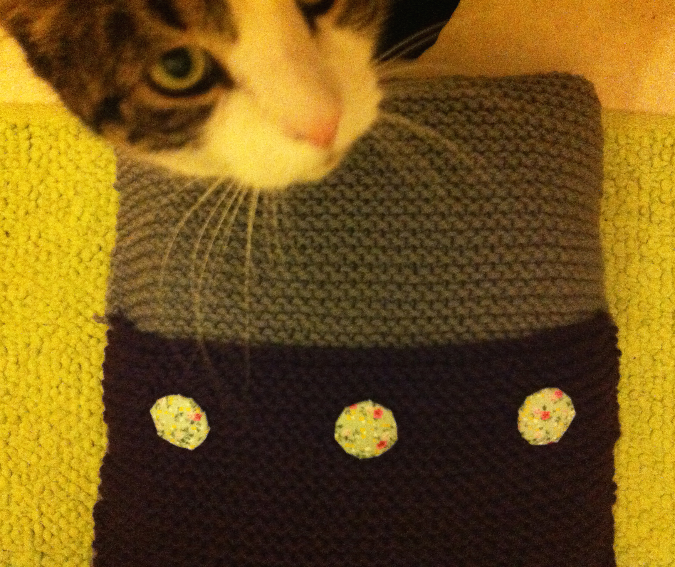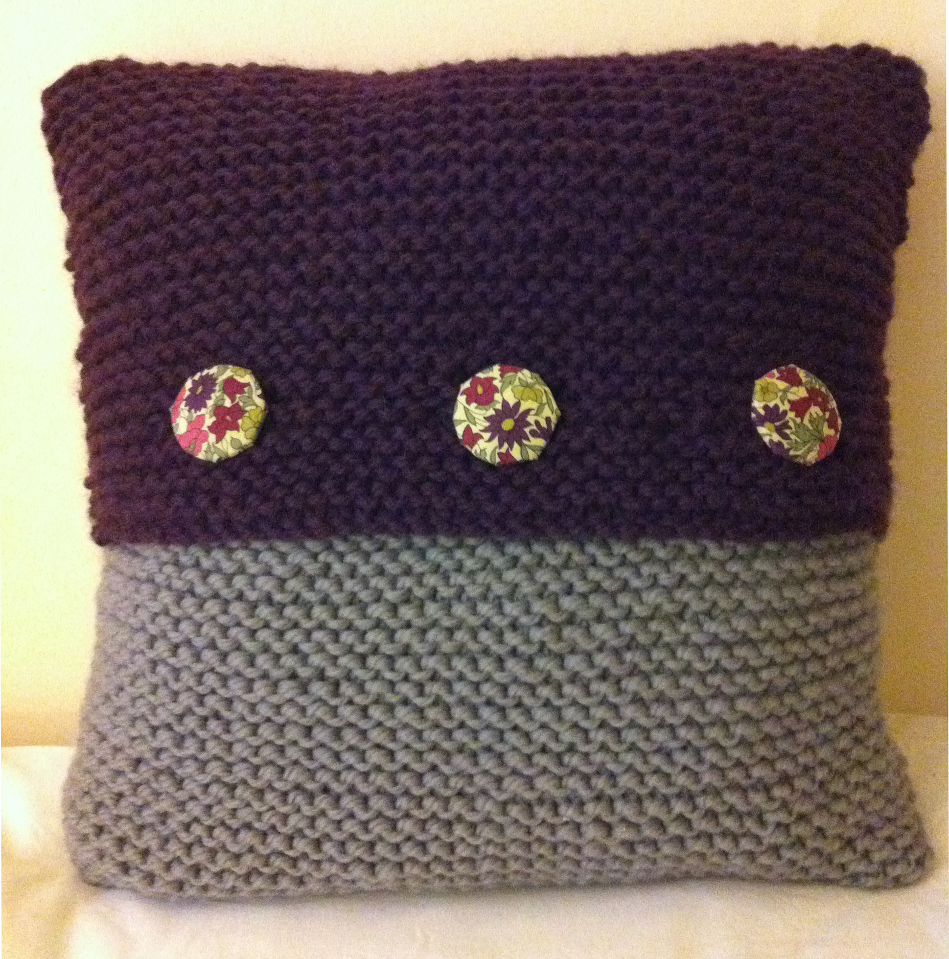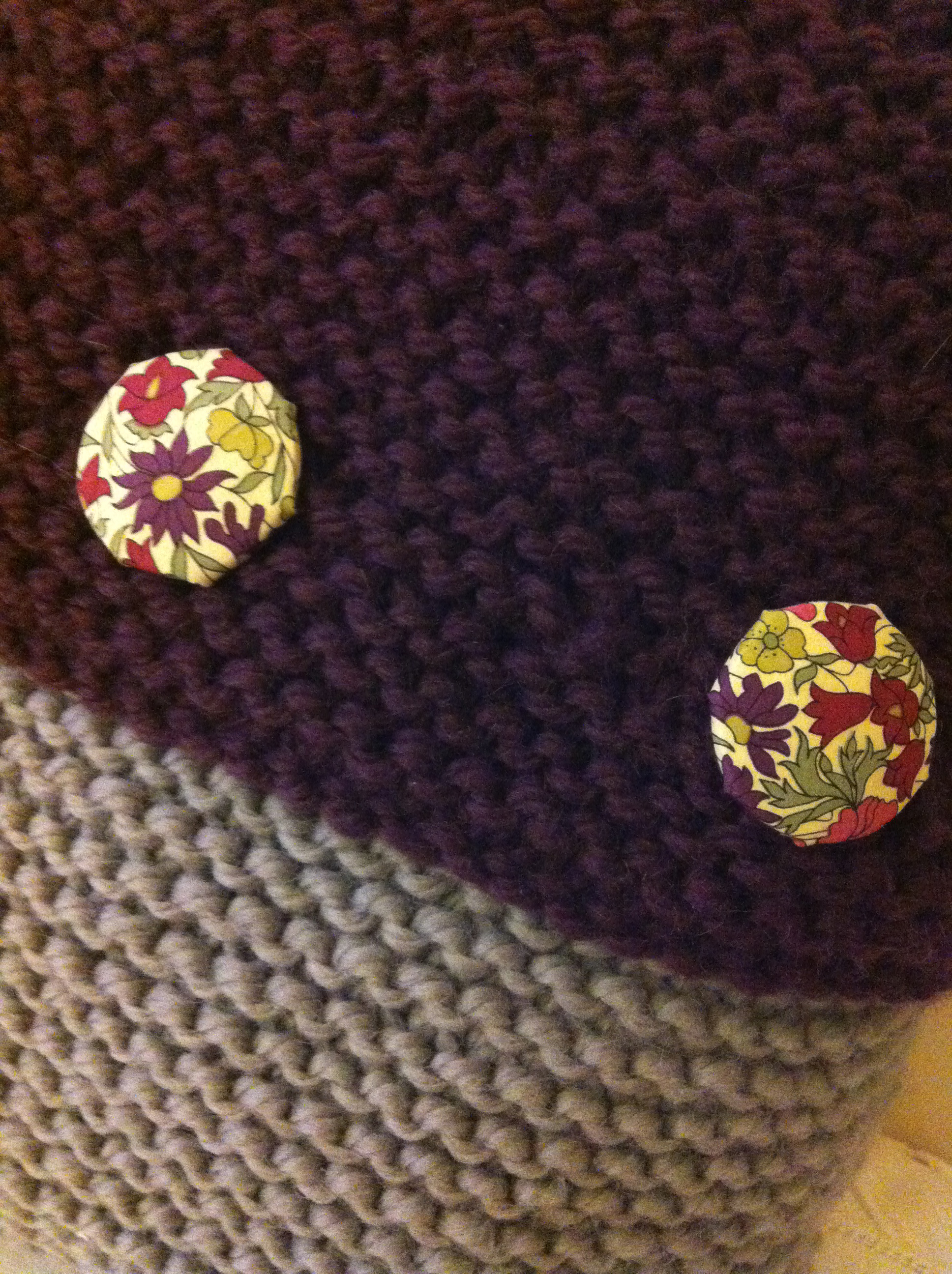 I recently started knitting and began with simple things like scarves but as my friend Olivia just bought a new flat I thought for her Birthday I would try to make her a cushion cover.  I stuck to garter stitch as I really like how textured and neat it looks when using a thick wool. For the wool, I chose two colours of Rowan’s ‘Big Wool’: a purple and a grey.