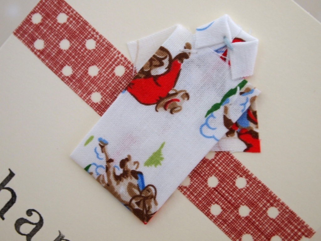 I used an Origami technique to fold the shirts and ironed them as I went to keep folds in place. I then stitched them at the top of the collar to make sure they held together on the card.