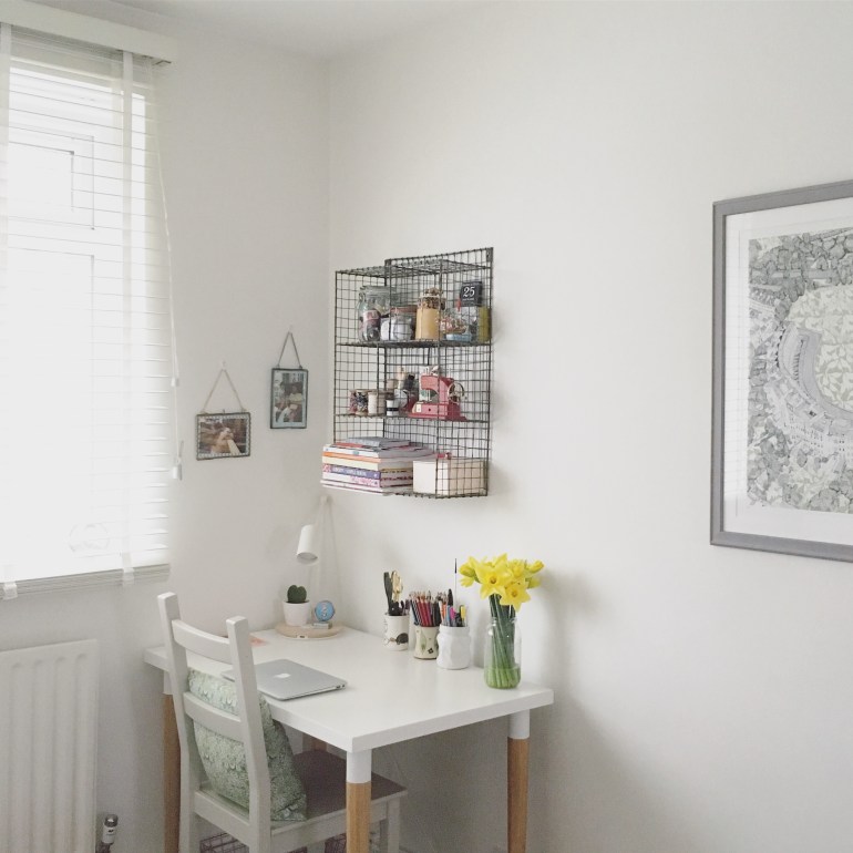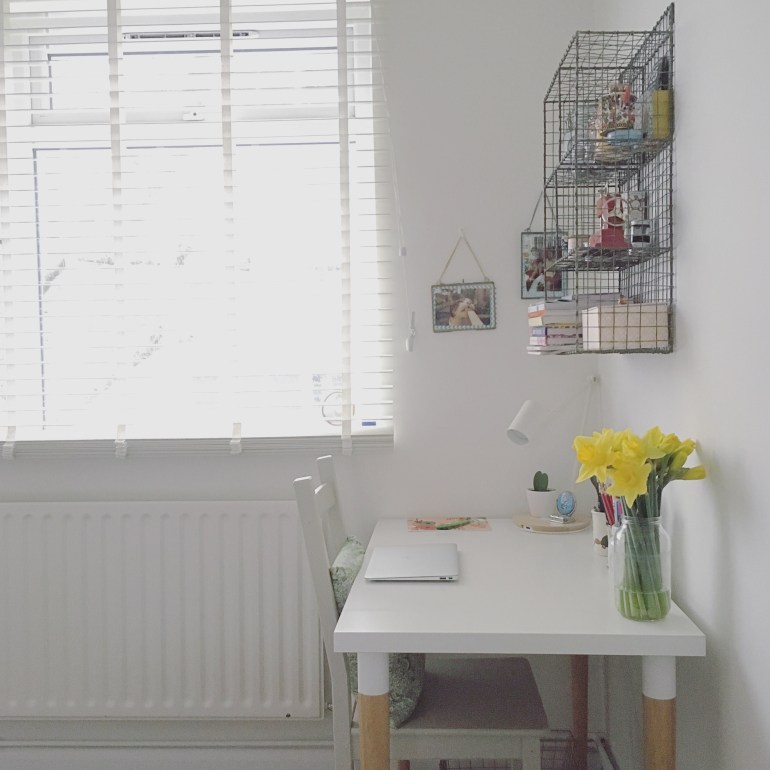 Saying that, my desk is one of the only places I really love having bright flowers so I always get some bright tulips, daffodils or roses for this space.