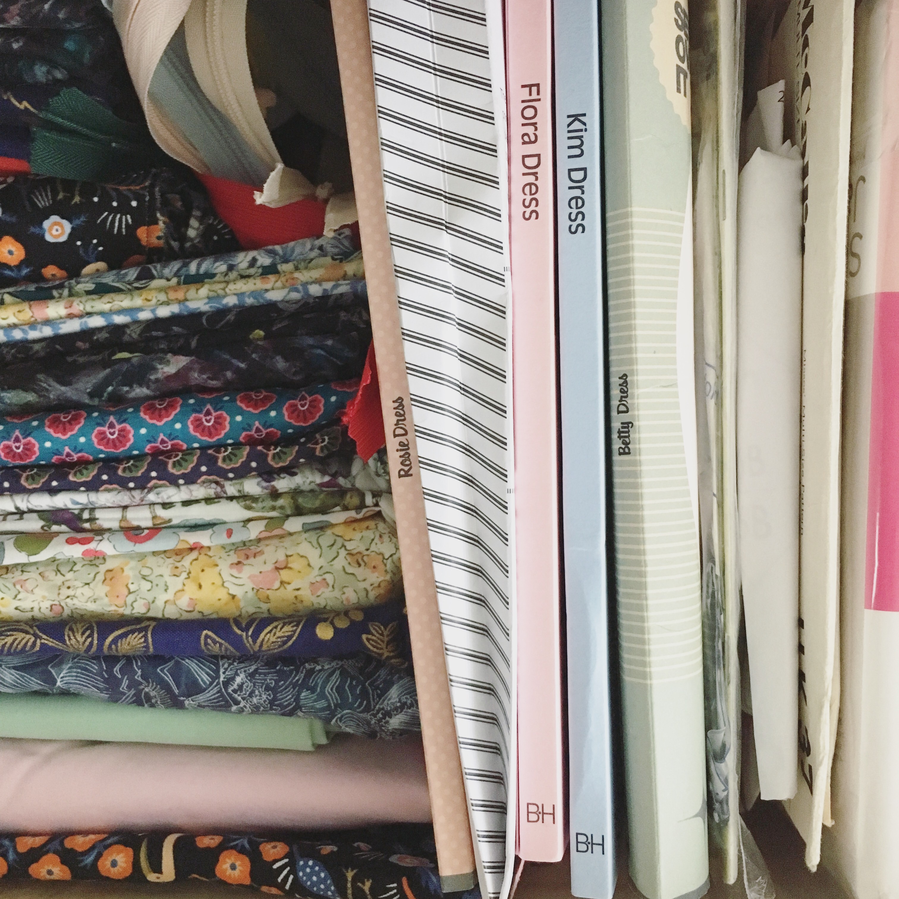 I also store my patterns here. I just have a select few and usually put together a combination of several patterns for each garment. My favourites are Flora from By Hand London, Martha from Tilly and the Buttons, Betty from Sew Over It and Emery from Christine Haynes. Any combination of the above is a sure winner.