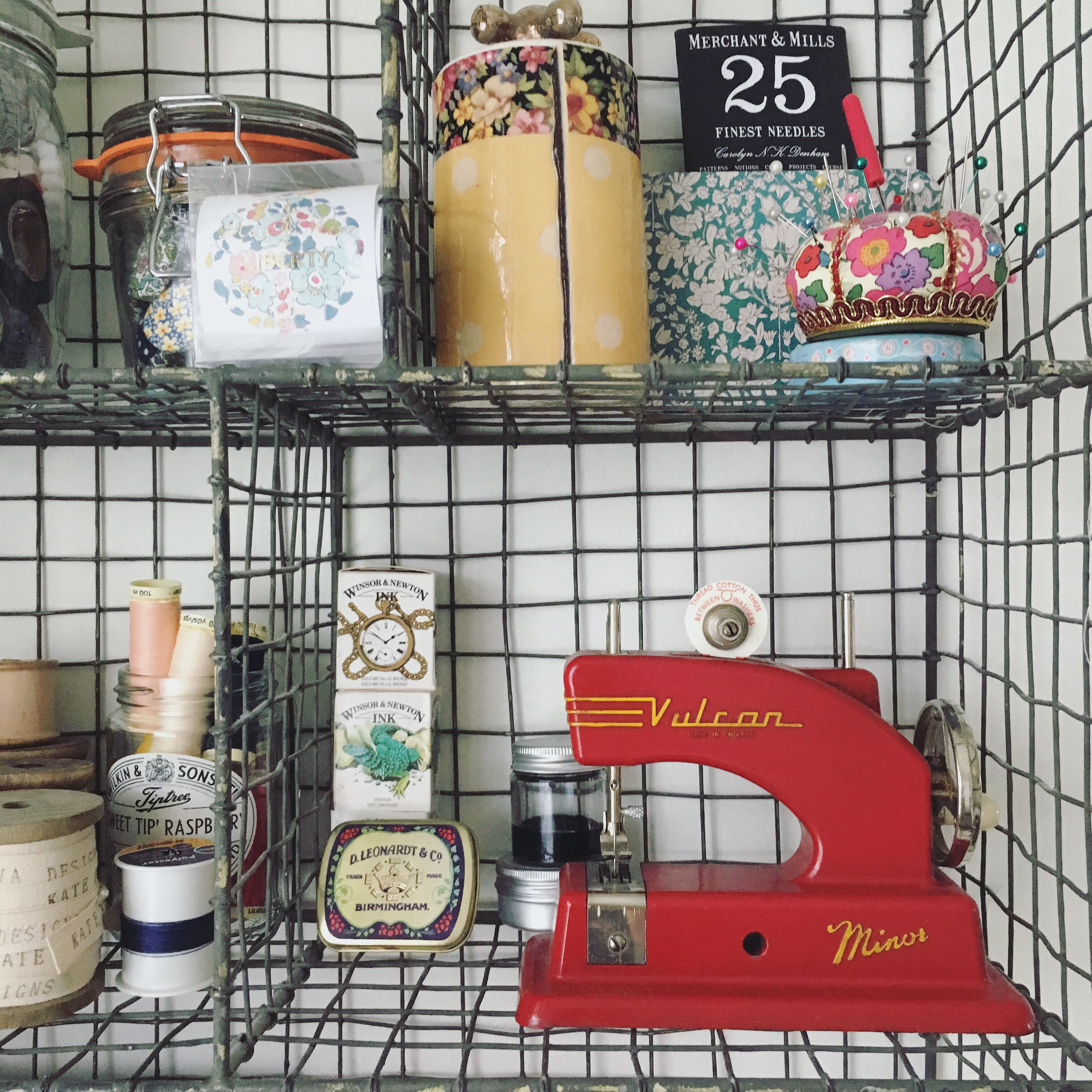 The most important thing for me is that everything is in grabbing distance. My storage isn’t completely sufficient for this because I’ve pretty much tried my hand at every crafty hobby going. So I’ve got additional under bed storage for my dormant hobbies; knitting, card making, painting, crochet, jewellery making, screen printing etc, and have my most used out which at the moment is sewing and calligraphy.
