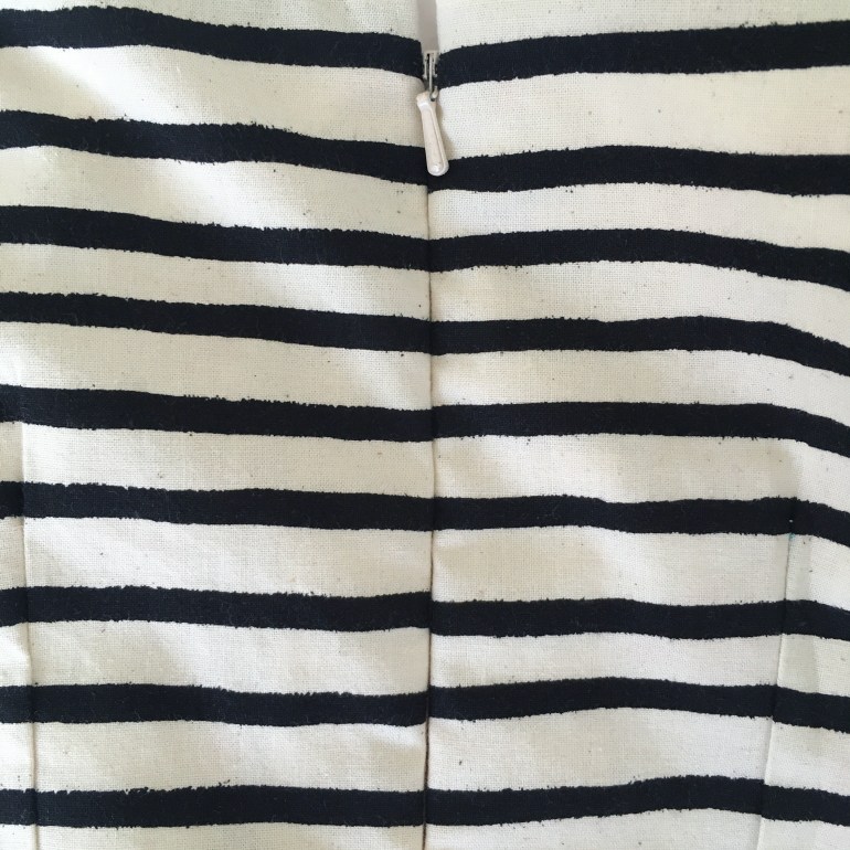 I spent a lot of time pattern matching the zip and I’m glad I did since it turned out quite well! I attached the zip on one side then marked out each stripe on the other side of the zip before attaching to the other side.
