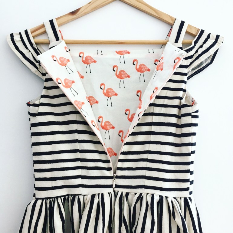 When I made the flamingo dress for my friend’s newborn baby, I really wanted one in my size but only had enough of the fabric left for the lining, which I thought could be a bit more of a grown up version anyway.
