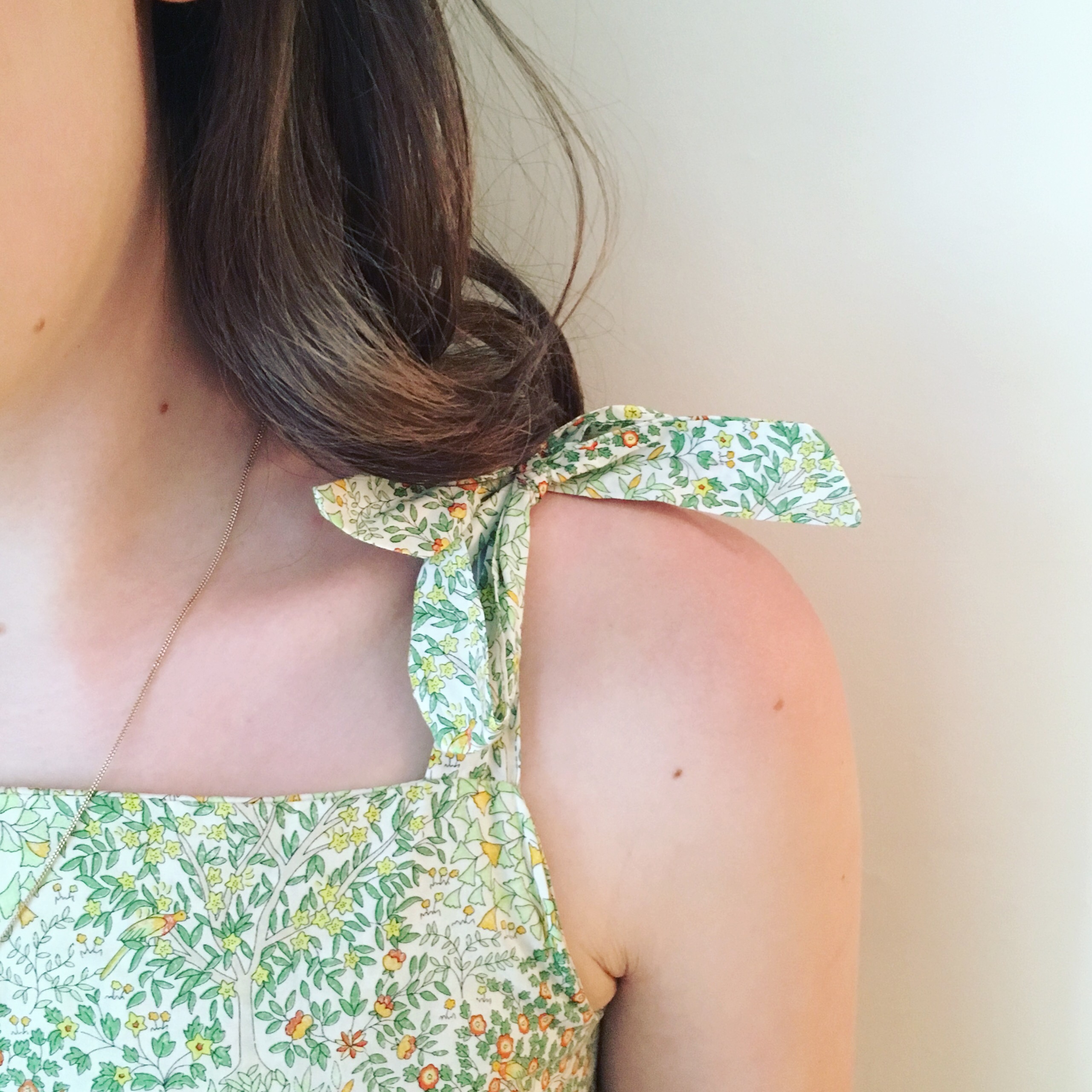 I’ve tried wide straps, double straps and thin straps so far as moderations to the normal pattern but this time I wanted something more playful to go with this Liberty Jess & Jean fabric. The print was made using make up from Nars and Laura Mercier so I thought it lent itself perfectly to this playful style.