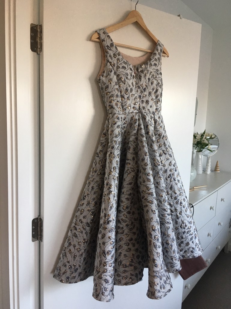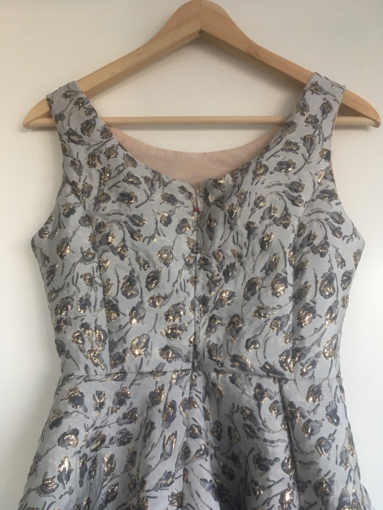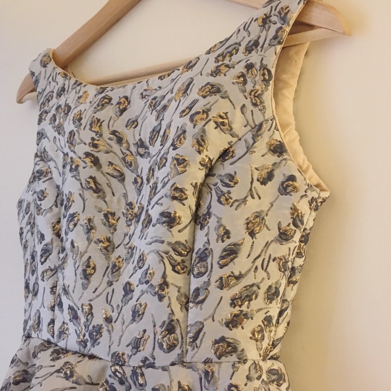 I knew I wanted to make an Elisalex with a full circle skirt and toyed with the idea of velvet. It’s not often that I decide on the pattern first, I don’t think I’ve ever done that in fact, I always just see the fabric and know what it should become. And sure enough my plans of velvet changed when I set eyes on this amazing silk brocade. It wasn’t what I was looking for; not the deep jewel tone colours or the velvety texture but i couldn’t turn it down. I was so excited about setting eyes on it that the lady in the shop gave me £5 off.