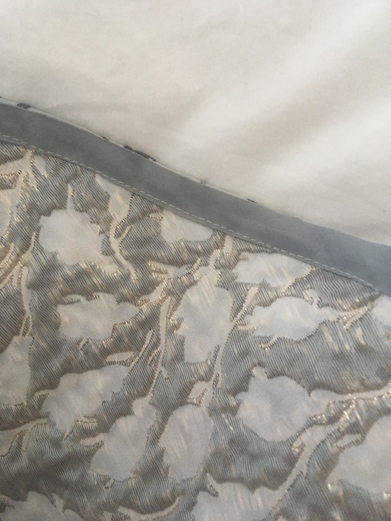 I already had some gossamer silk crepe in peach that I was originally going to line a lace dress with so I used that as the bodice lining to avoid it being itchy inside. The combo of the silk and the brocade was truly horrible to sew; it kept snagging and I changed my needle a thousand times. I thought originally it was the silk but I think it was just the combo of a thick fabric and really thin one that made it annoying.