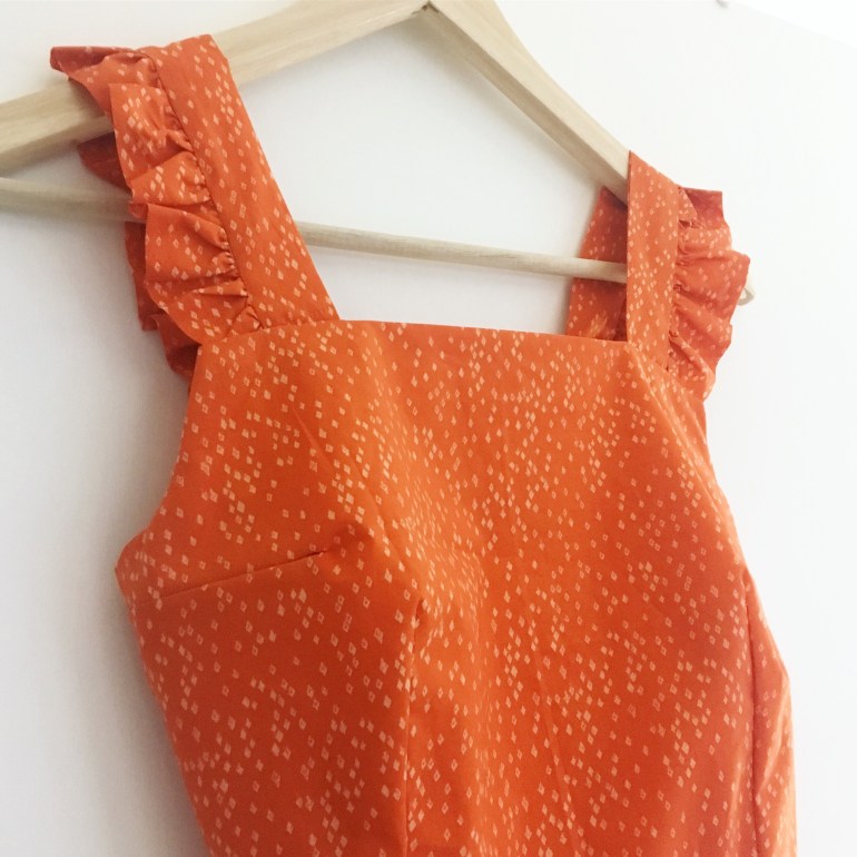 When I bought this fabric in the Liberty sale I thought it had a bit of an Alice in Wonderland vibe, not dissimilar to Rifle Paper Co’s Wonderland collection. I thought it would look great with ruffled straps to make it quite girly but with a long length and simple skirt to avoid it being too flamenco-esque.