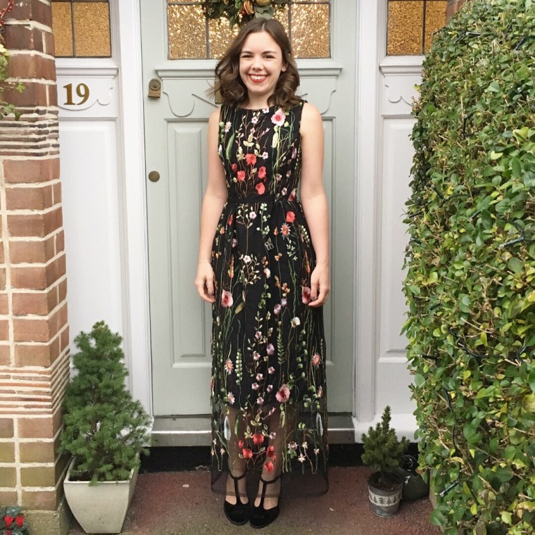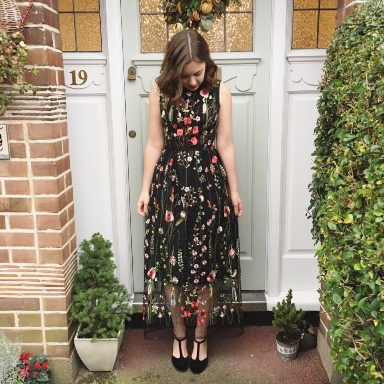 I lined this with a gossamer crepe which feels just so luxurious on and it’s so light and swooshy. I planned to add long sleeves and also make it end mid calf however when I saw it at the pre-sleeve pre-hem stage I thought it looked pretty good so I just left it as is. I really love the sheer bottom of the dress, super chic that you can see your shoes and all the details of the embroidery. I can see this make going from spring to autumn and being ideal for weddings and parties.