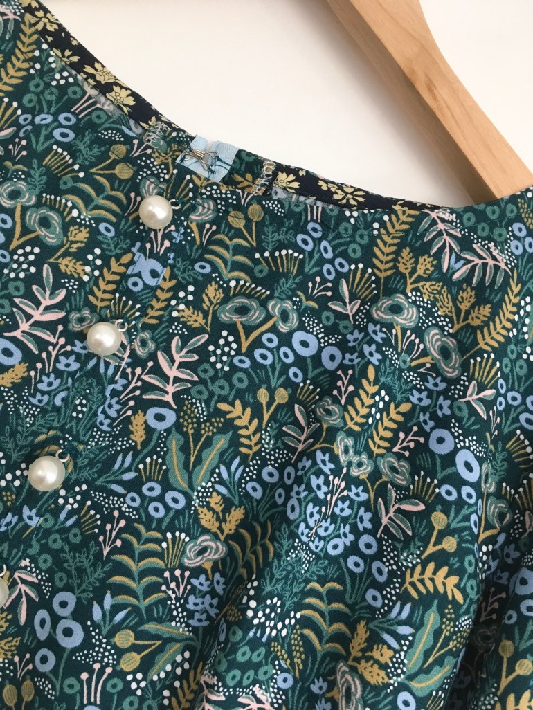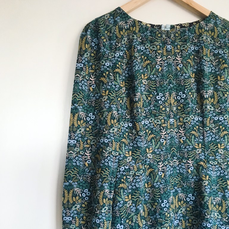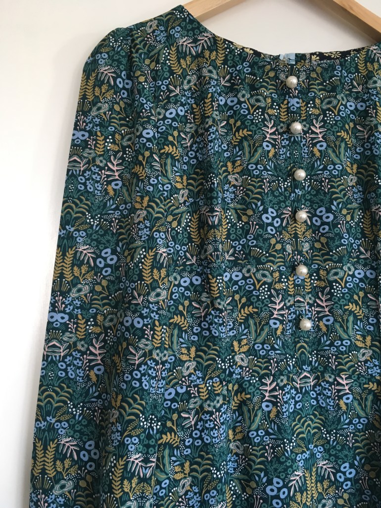 This fabric is one that I missed out on the first time round when Rifle Paper Co released it, it’s from their first collection, Menagerie. I saw that Minerva Crafts were selling it so I just had to get it. I wanted to make something with a bit of a 70s vibe so I added volume to the sleeves with elastic at the cuffs and a fake button placket.