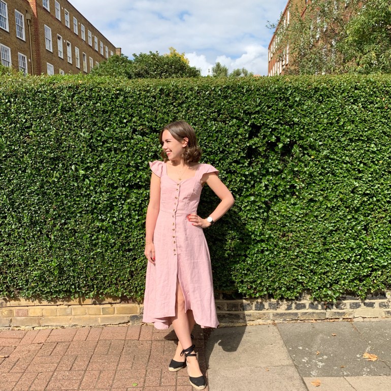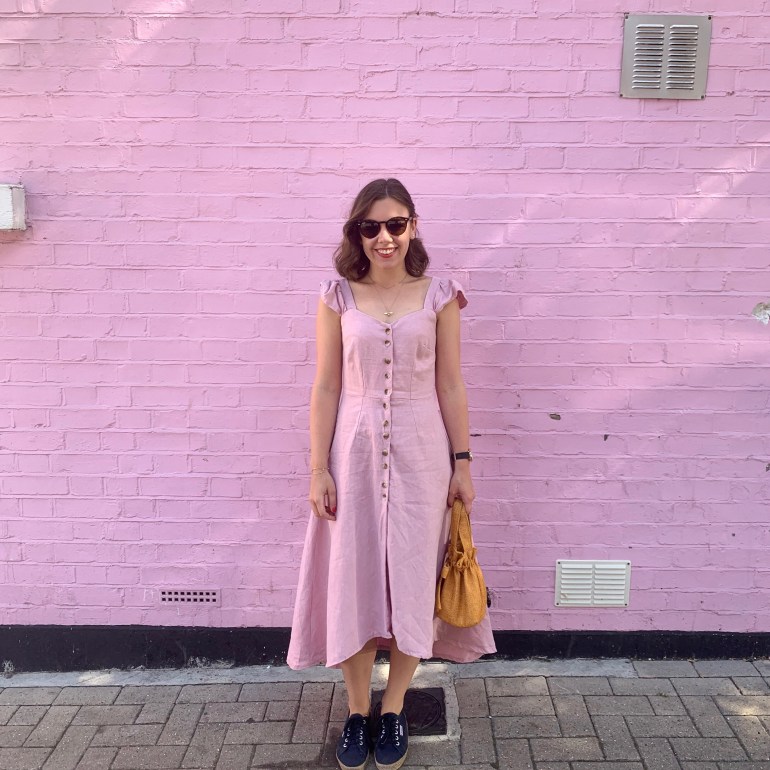 As for the buttons, I wanted them to be quite simple and a bit of a contrast because I’m not used to wearing pink, so I chose tortoiseshell ones from Liberty.