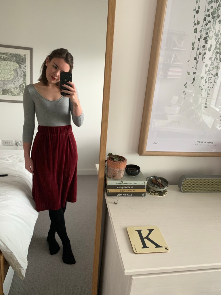Next my pleated skirt made from a satin remnant from New Craft House. This was a super quick make, it maybe didn’t even take half an hour, but I don’t wear it often. One reason is because I don’t really wear separates aside from things like Christmas jumper day and so I reckon I’ve worn this 5 or 6 times.