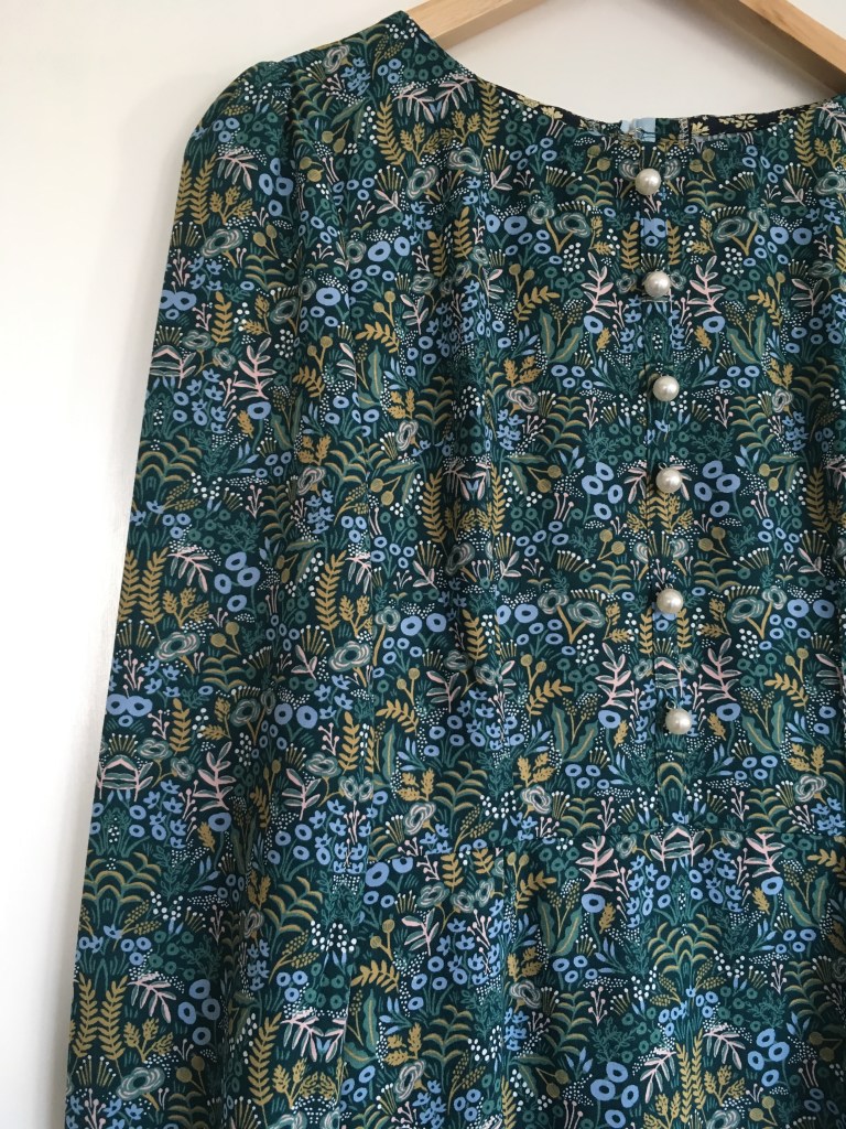 Next up is my favourite favourite dress, another Holly/Kew hack this time in Rifle Paper Co rayon. Firstly it’s my favourite ever fabric, and secondly I spent lots of time on it so I’m really quite proud of it. From the Liberty binding to the fake button placket and the pearl beads. I wear this dress all the time. I’ve got so many memories in this dress, not least picking up my cat Betty. If I was a cartoon character this would be the dress I wear every day. I think you get the point! I’ve probably worn it over 80 times. It’s still perfect.