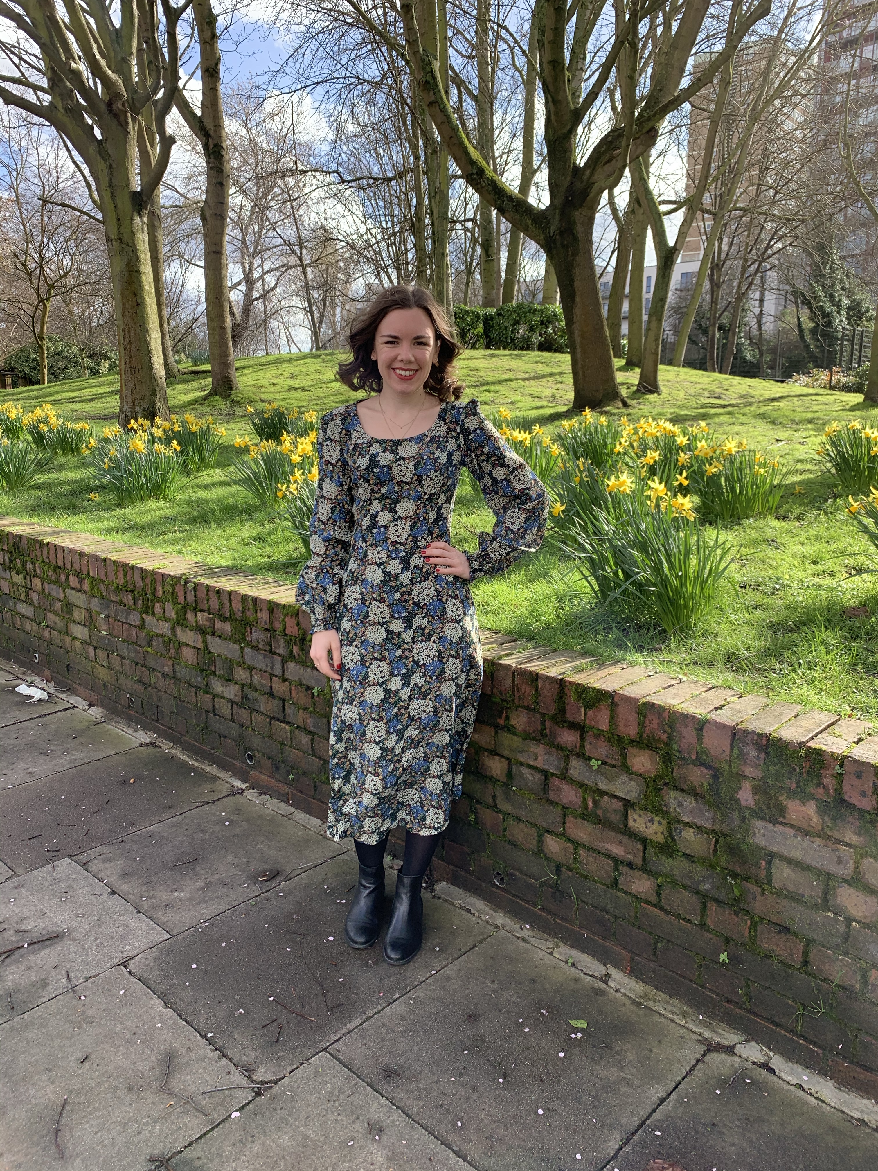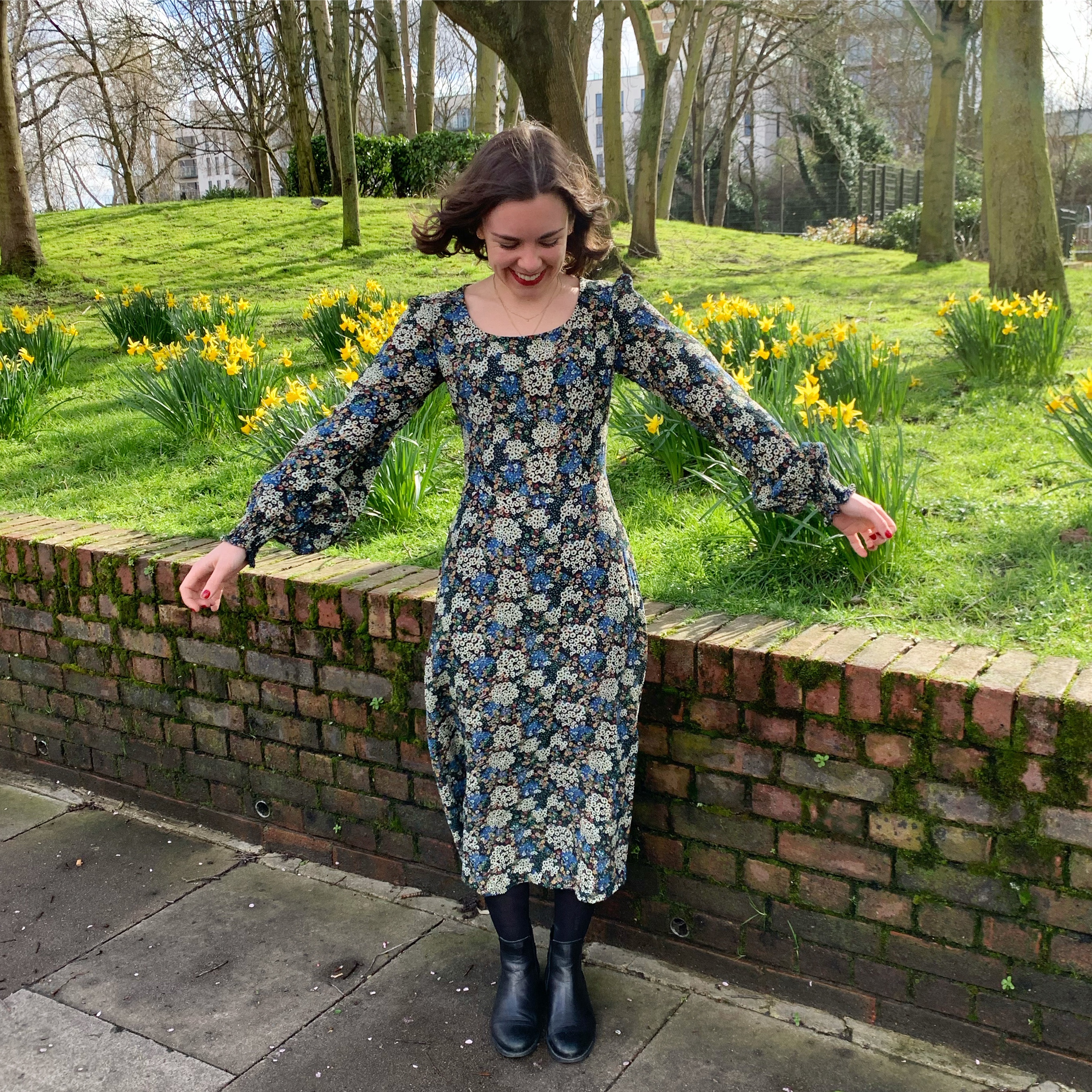 I kind of wish I’d kept the neck high for more of a 1970s look but I’m happy with it overall. Also I figured after washing it that it doesn’t need to be ironed which now means it’s my favourite dress .