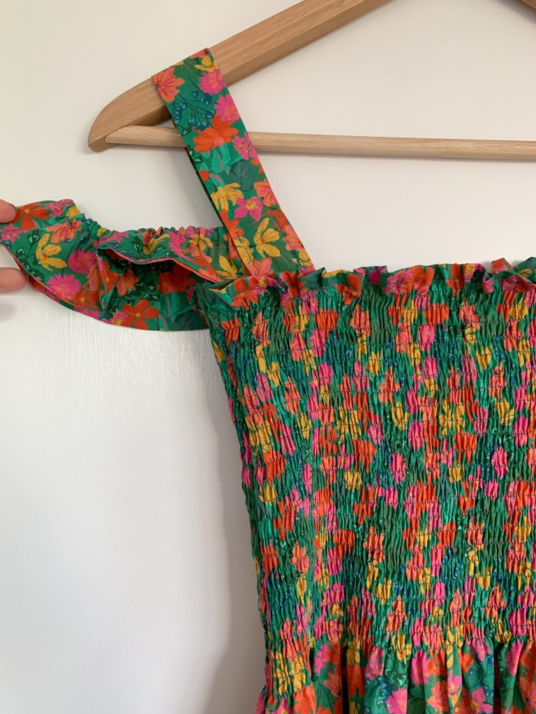 So essentially I hemmed the top, did 23 lines of shirring, overlocked seams and sewed the dress together – and that’s how easy the dress was. I decided to put the seam at the side rather than the back just to hide the seam under the arm and leave the back seamless. I then added the straps, attached the gather at the hem and voila.
