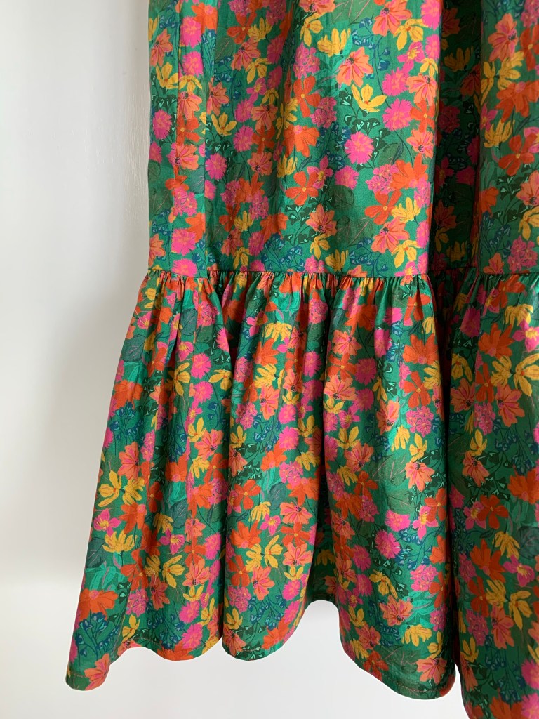 There’s not much to say about this dress ‘pattern’ it’s essentially a rectangle which I cut based on my bust measurement x1.5 width, I measured the length I wanted which was about 90cm without the ruffle. The ruffled piece was 1.5 x the width of the main dress piece, gathered to fit. If you’re after more detail on that, I would recommend the By Hand London shirred dress tutorial.