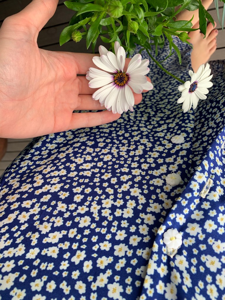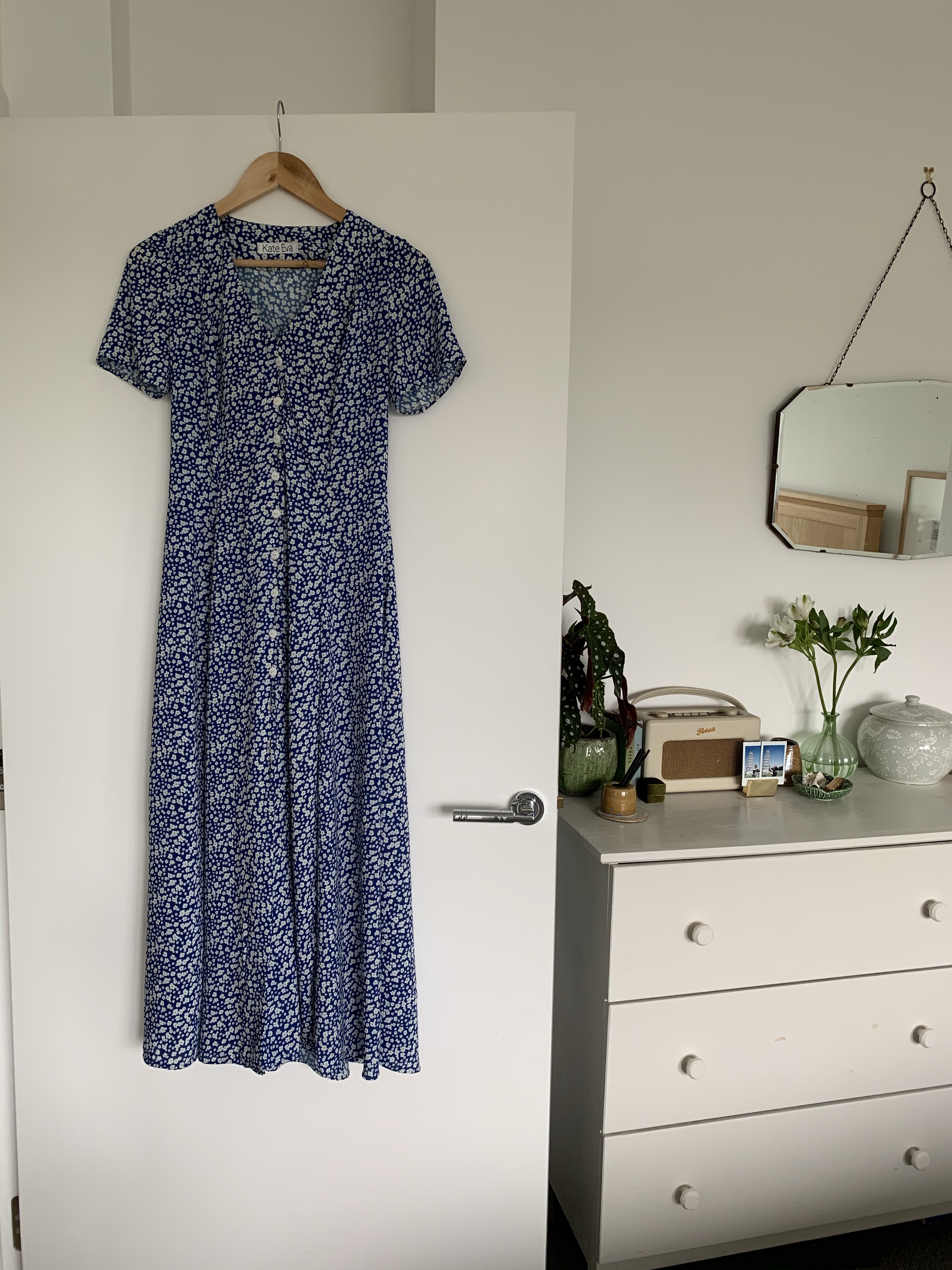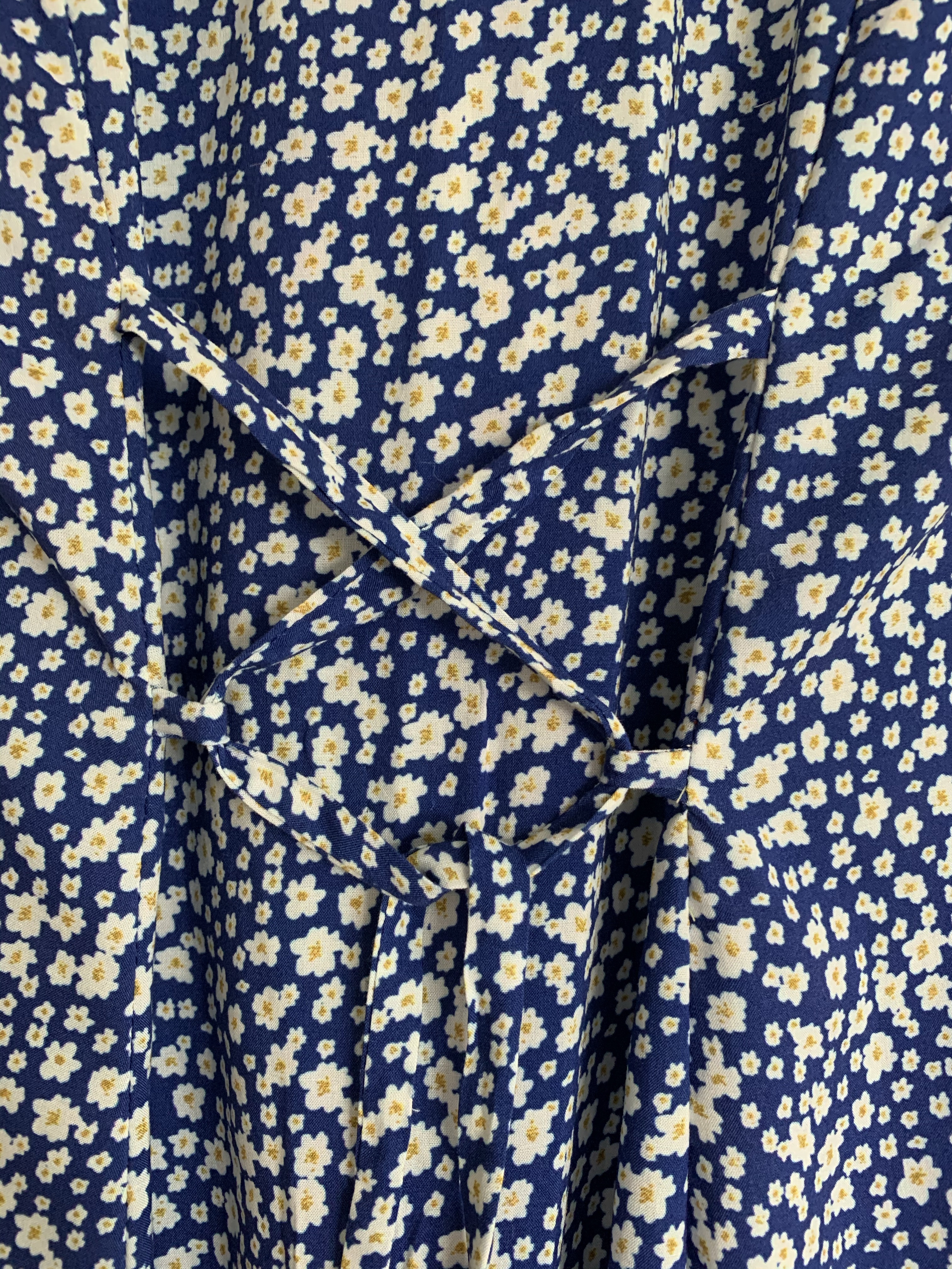 I added some daisy buttons I got from eBay and used yellow thread to complete the look. I really love this pattern, it feels so comfy but also put together and I’ve reached for this dress many times since making it. It’s also really nice that it’s loose but you can tie it tighter for a more fitted look.