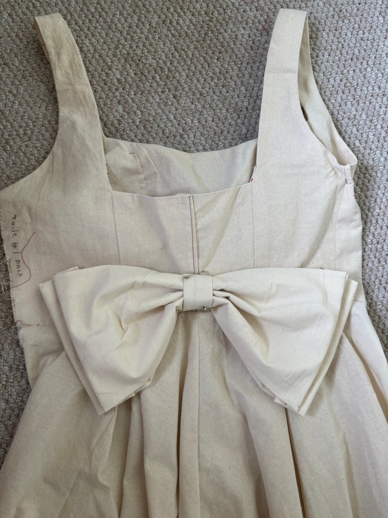 I made a few bows before I got to what I thought was my final one. I was feeling quite uninspired and thought it looked ok but there was always a niggle that it looked a bit stuck on and didn’t suit the rest of the dress. I initially made it asymmetric so it was two layers on one side and folded on the other side and I quite liked that it was a different take on a bow, but it was still a bit too regular for my liking and I couldn’t put my finger on what was wrong with it.