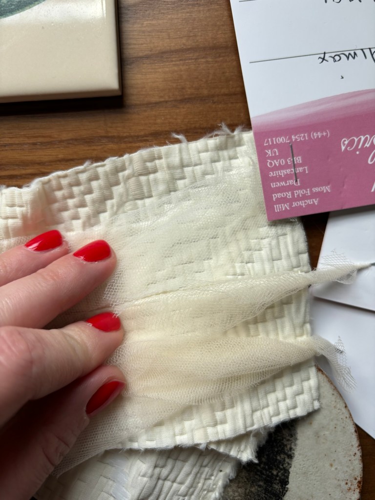 The final thing to do was making a veil. I was so unsure whether I wanted to wear one and in the end I thought I’d just make it and see. I bought lots of different tulles from silk to poly and in the end I just went for one from Minerva Crafts which was polyester as it was smoother and ironically silkier than the pure silk ones. Plus as I knew I wouldn’t wear it for the whole day it made more sense to save money here. One thing I will say about tulles is that there are LOTS of different shades of white/ivory/cream and I was initially worried that all would be too white because of the shade of my dress but I found one in the end (Avorio colour linked here).
