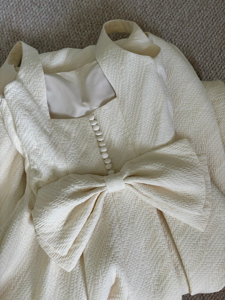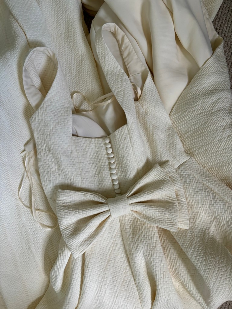 It felt like a huge decision still to change the bow at the 11th hour but with less than 2 weeks to go I did it, and I’m so glad I did. The original bow was lovely but this one just made my dress feel finished. And although I felt such decision making fatigue in the end I’m glad I powered through. Shout out to Man Yee for her endless support and advice on my bow journey!